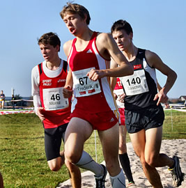 Auf der Straße erkämpfte er sich zusätzlich mit Debertin und Wammetsberger den Baden-Württembergischen Mannschaftsmeistertitel über 10 Kilometer. Diese Distanz scheint es auch, die Frederik am meisten liegt. Ließen seine 31:55 min als Dritter beim Lauf auf der Autorennstrecke am 01.11.2011 in Hockenheim schon aufhorchen, beim Eröffnungslauf zur 30. Winterlaufserie in Rheinzabern über 10 Kilometer setzte er nochmals einen drauf und katapultierte sich als Gesamtsieger mit neuer persönlicher Bestzeit von jetzt 31:26 min auf Rang 3 der A-Jugend-Bestenliste 2011 über 10 Kilometer. |