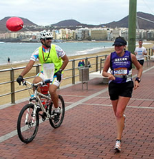 | An der Playa de Las Canteras | Tempomacher nicht zu Fuß sondern auf dem Fahrrad | Zu welchem Marathon man auch fährt, Dänen sind auch da |