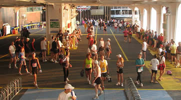 | Tausende Läufer entern die Fähre zu Überfahrt nach Lévis | |