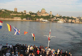 | Mit der Fähre über den Sankt-Lorenz-Strom hinüber in die Schwesterstadt Lévis mit traumhaftem Blick auf jenes Stadtpanorama, das man stets vor Augen hat, wenn der Name Québec fällt | |