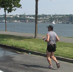 Und im Juni startet man einen Zehner, der die Teilnehmer direkt am nur wenige Kilometer von der Innenstadt entfernten Montmorency-Wasserfall vorbeiführt. Etliche hundert Teilnehmer lassen sich auch dazu anlocken. Doch die Chute Montmorency, die mit über 80 Meter zumindest in der Höhe sogar den Niagara-Fällen überlegen ist, zählt ohnehin zu den bevorzugten Ausflugszielen von Québécois und Touristen gleichermaßen. Was die dabei erzielten Zeiten angesichts eines Gefälles von 140 Metern wirklich wert sind, könnte sicher Anlass zu Diskussionen geben.