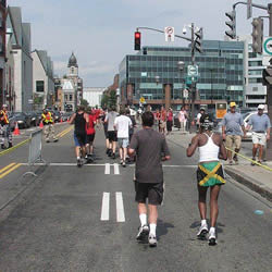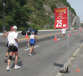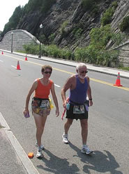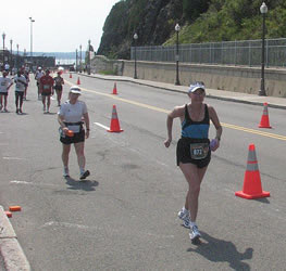 | Meile 25 und la dernière côte - letzte Steigung auf Boulevard Champlain | ||