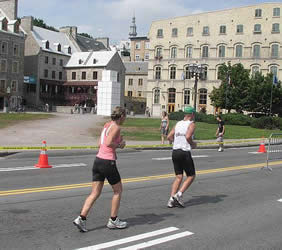 Unsichtbar hoch über den Läufern liegt die Zitadelle von Québec. „La Citadelle“, die trotz ihres auch im Englischen verwendeten französischen Namens in ihrer jetzigen Form von den Briten erbaut wurde. Der Ausbau und die Verstärkung der ursprünglichen Befestigung war eine Folge des amerikanischen Unabhängigkeitskrieges, in dem die Stadt kaum zwanzig Jahre nach dem Fall der französischen Festung von der heran marschierenden aufständischen Kontinentalarmee bedroht wurde.