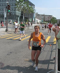 Es ist schon interessant in der Ergebnisliste zu sehen, dass nahezu alle Marathonläufer für die letzten zehn Kilometer fast genauso lange – oder sogar noch länger brauchen – wie für die auch noch den Anstieg zur Brücke enthaltenden 11,1 Kilometer von der Halbmarathonmarke bis zum Startpunkt des kürzesten Rennens des Tages, das der aus Algerien stammenden Baghdad Rachem mit 30:57 gewinnt. Bei den Damen ist hier die schon als Gesamtachte einlaufende Karine Lefebvre in 37:40 erfolgreich.