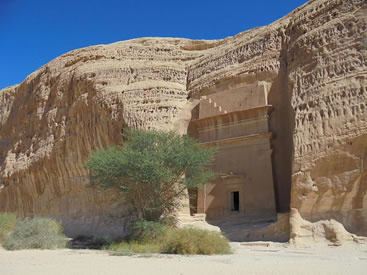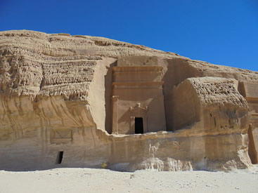 | Madain Saleh, die zweitgrößte Siedlung der Nabatäer, mit 131 Gräbern die aus Stein gemeißelt sind | |