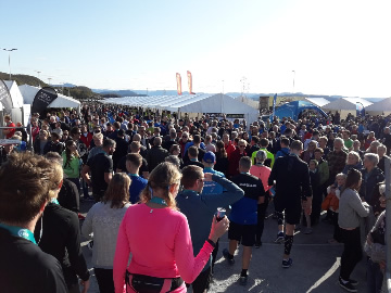 | Volles Haus, aber gut organisiert für über 5300 Finisher | Rückweg übers Meer, so weit? |