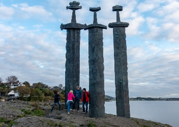 Zwei Tage vor dem Lauf angereist und noch ausreichend Zeit für die Erkundung der Stadt und Umgebung. Die Bronze-Skulptur der drei Wikinger-Schwerter, die den Einheimischen auch als abendlicher Lauf-Treffpunkt dient, sollte man gesehen haben. Auch die liebenswerte Altstadt am Hafen mit netten Geschäften, Bars und gutem Fischrestaurant lohnen sich. Wen es interessiert, wie Fische in Dosen kommen, kann sich im Konservenmuseum schlau machen.
