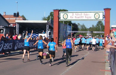 | Nach neunzig Kilometern in der weiten schwedischen Landschaft gibt es ganz zum Schluss kurz Stadtlaufatmosphäre | |